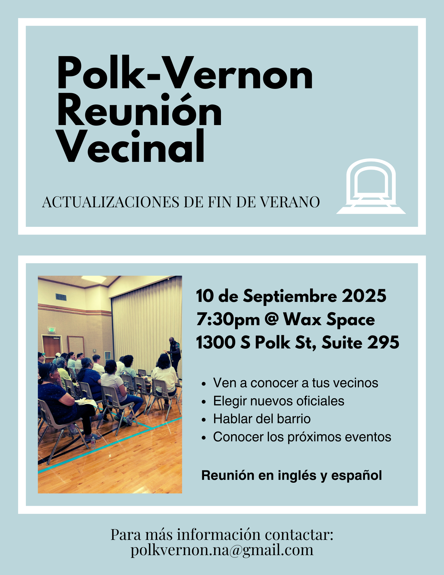 Sept 10th Neighborhood Meeting 7:30pm Wax Space @Tyler Station 1300 S. Polk St. Suite 295